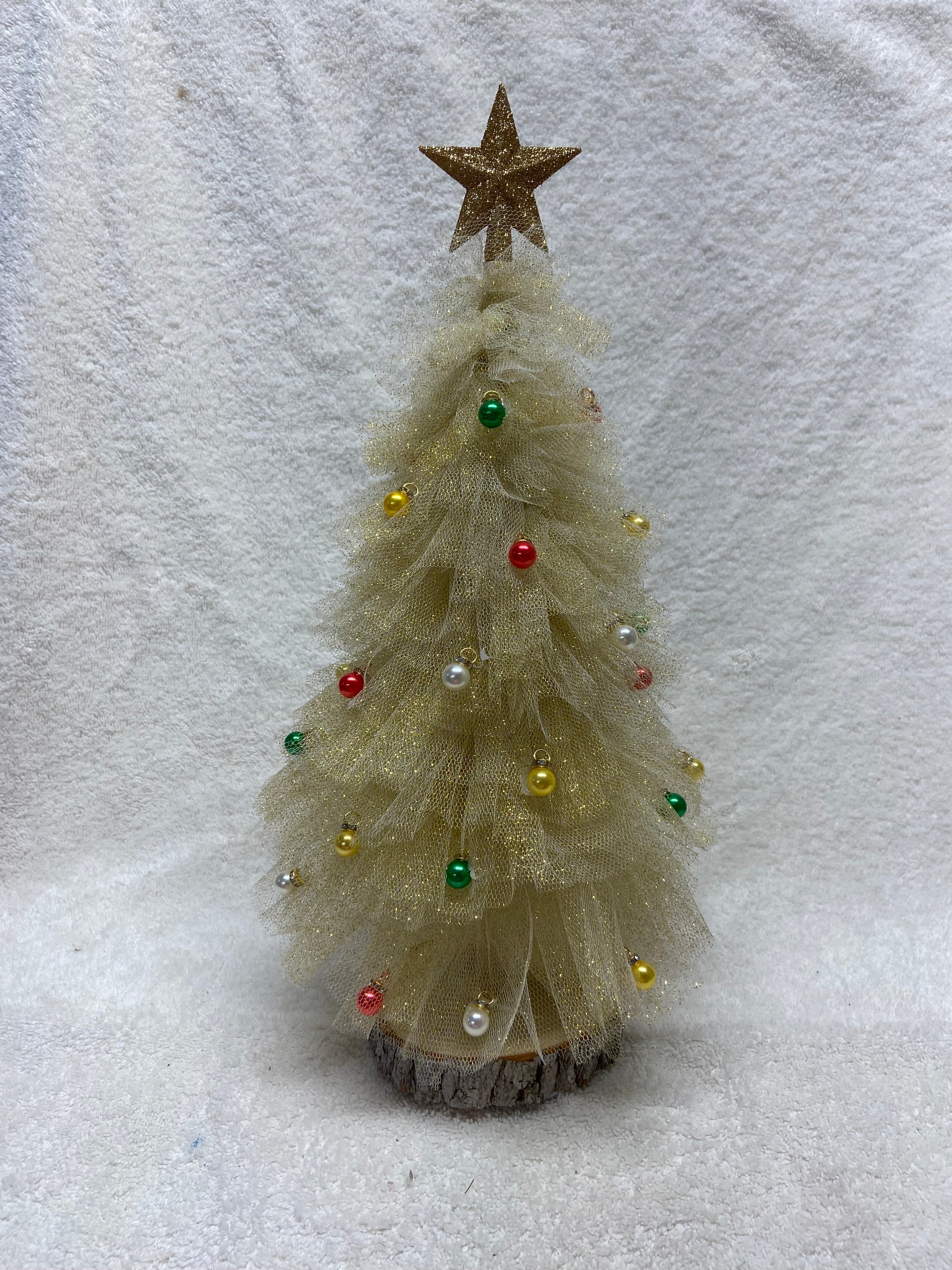 Golden Marzipan – 15” Gold Tulle Whimsy Tree with Classic Baubles & Star