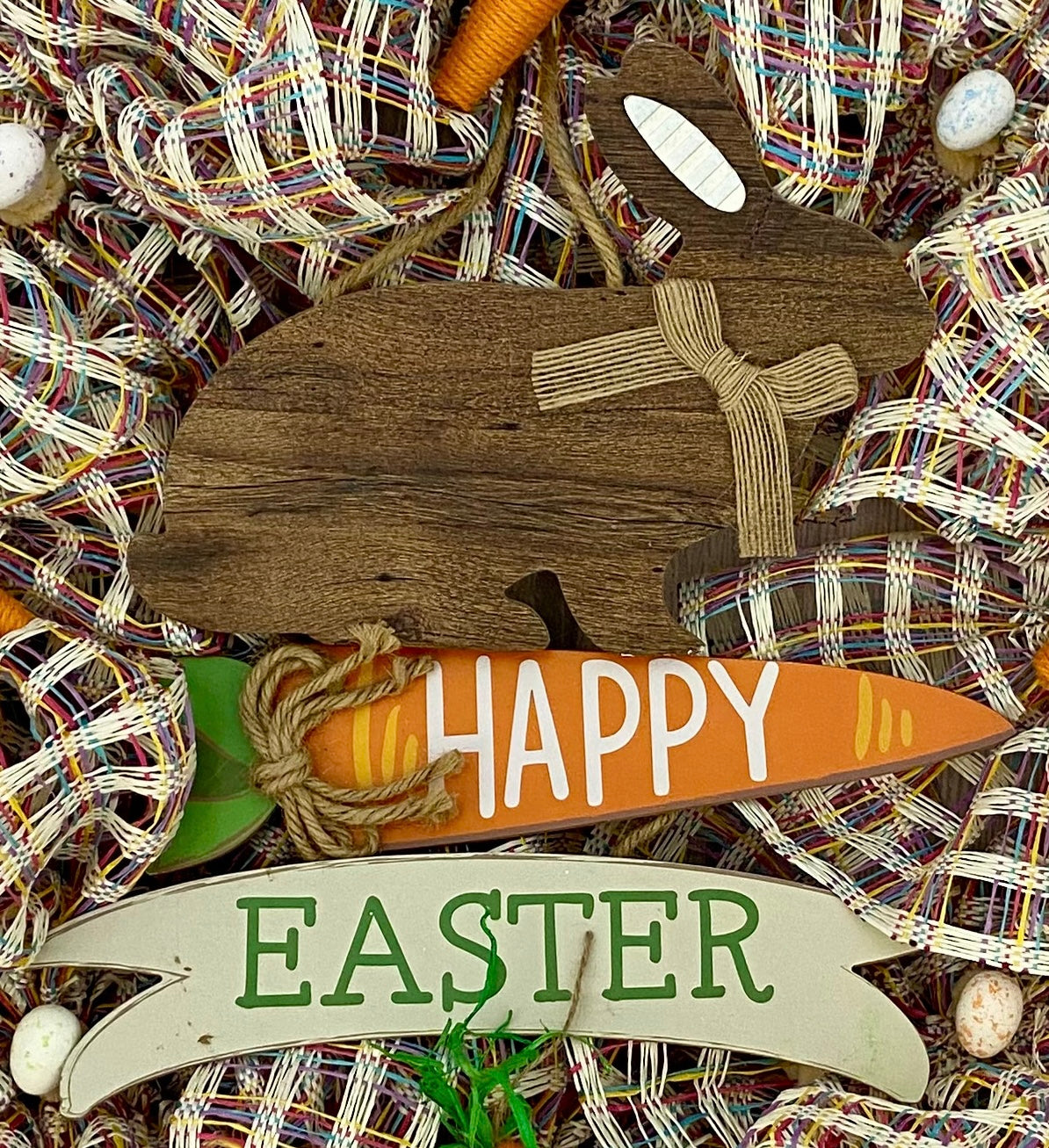 Rustic Bunny Patch Wreath – 29” Easter Plaid & Carrot Charm