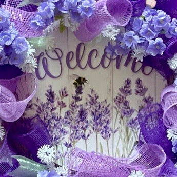 Lavender Meadow Welcome Wreath – 25” Spring & Summer Floral Mesh