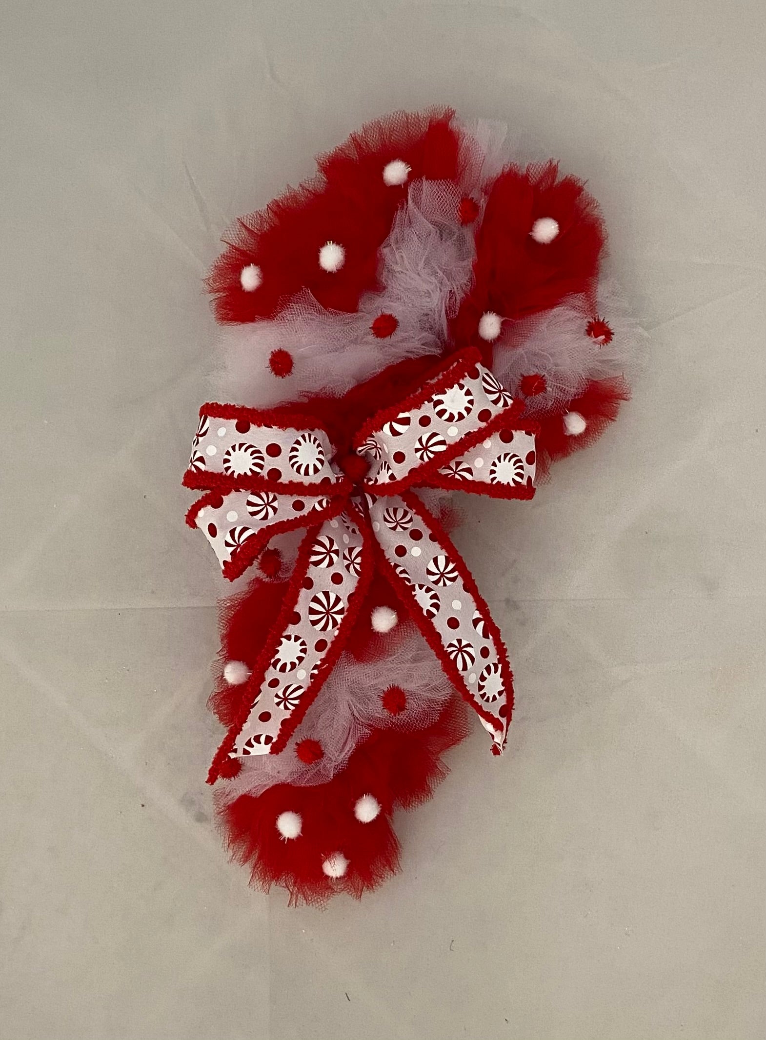 Peppermint Candy Cane Wreath – 16” Holiday Tulle Wreath