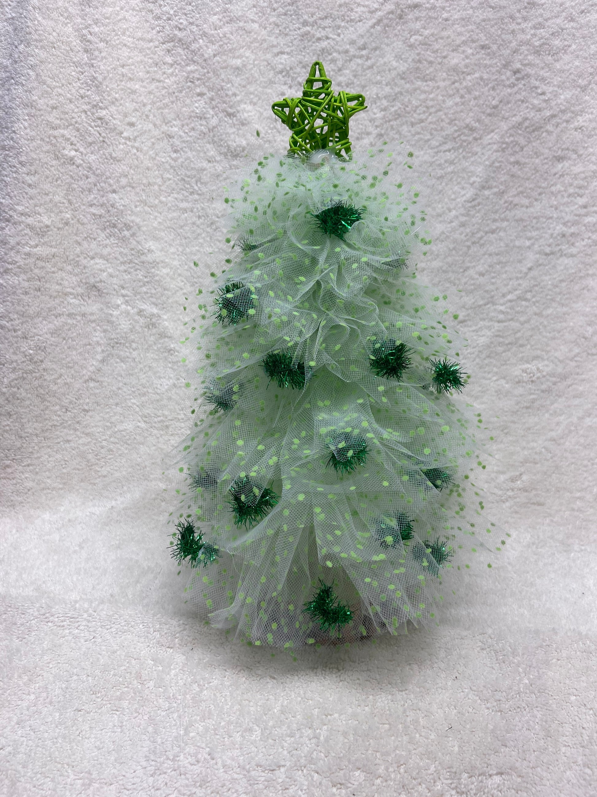 emerald tufts and crowned with a woven star as green as a sugarplum dream. This handmade delight adds