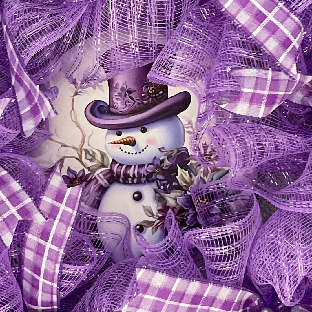Purple Frost Snowman Wreath – 24” Winter Elegance