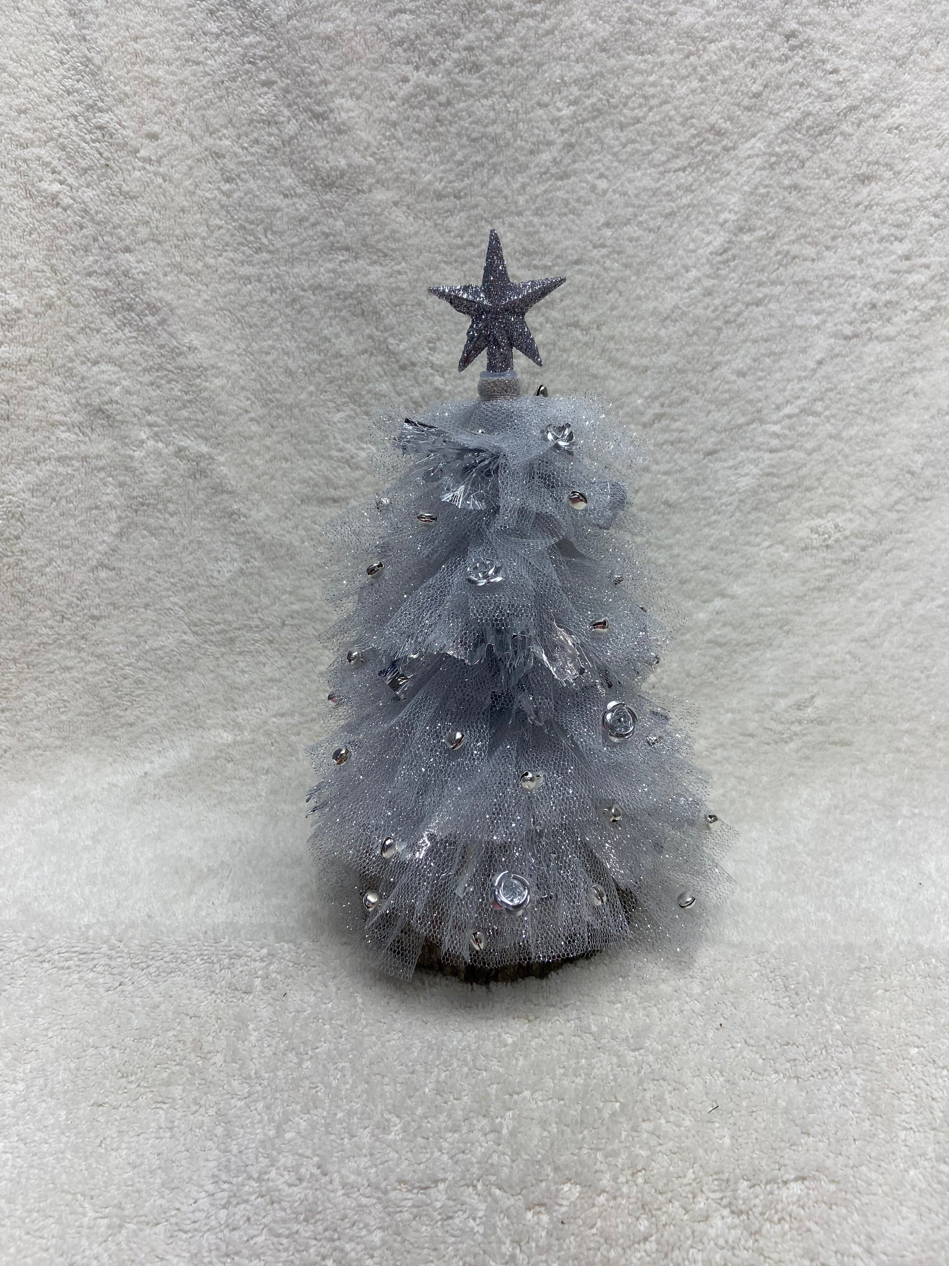 Silver Bell Frost – 10” Silver Whimsy Tulle Tree with Glitter Star