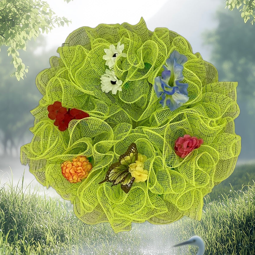Spring Whirl Wreathlet – 14” Mesh Wreath with Blooms & Butterfly