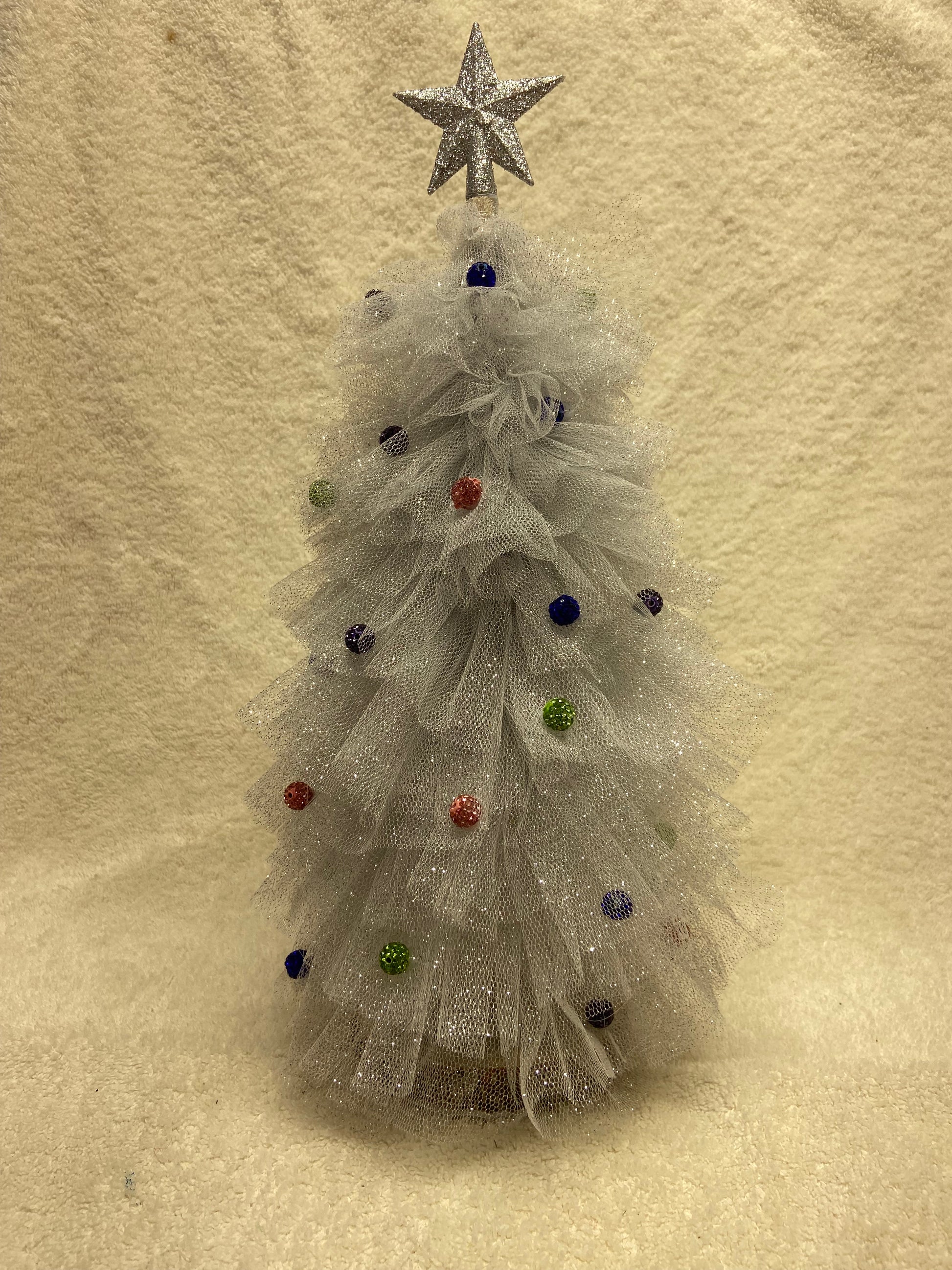 Sugar Sleigh Sparkle – 15” Silver Tulle Whimsy Tree with Star & Baubles