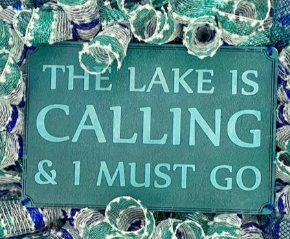 Crafted with airy mesh in shades of deep lake blue, mossy green, and shoreline white, this wreath features a charming center sign that reads: “The Lake Is Calling & I Must Go.” It’s a fresh, nautical-inspired piece perfect for vacation homes, front porches, cabins, or anyone who believes happiness is a paddle away.